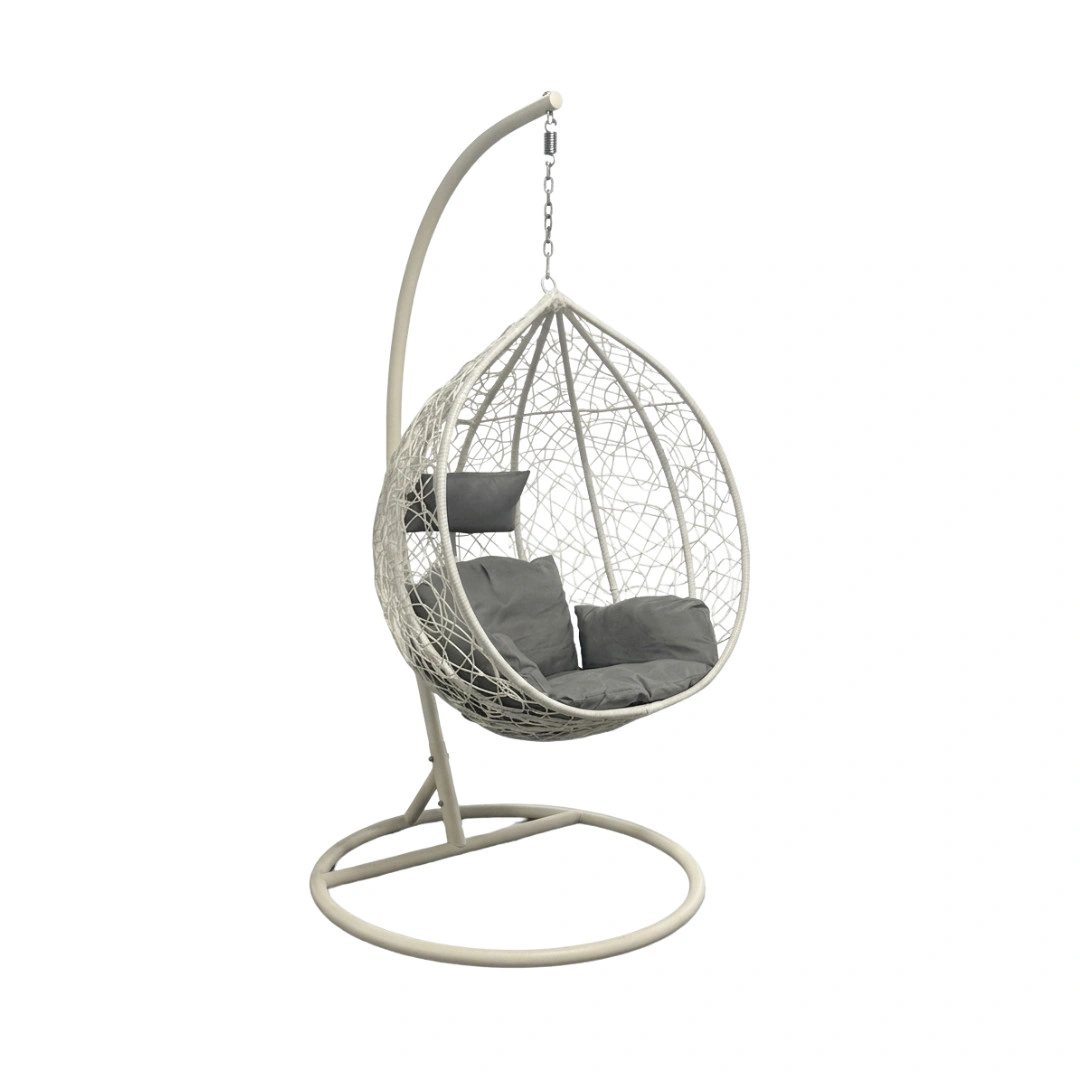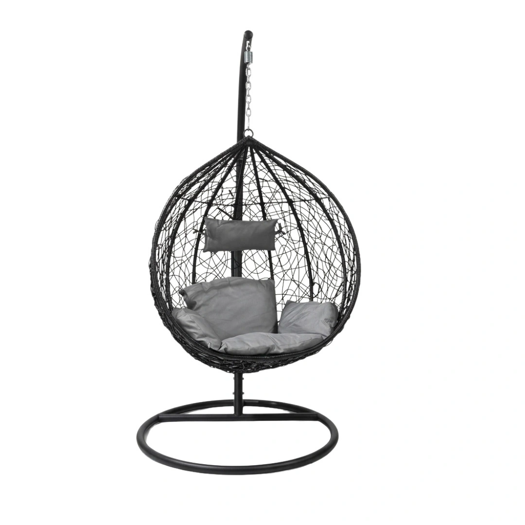 Függő tojásfotel állvánnyal – modern kényelem beltérre és kültérre. Teremts stílusos és pihentető környezetet ezzel az elegáns függő tojásfotellel, amely tökéletes választás teraszra, erkélyre, nappaliba vagy akár kertbe is. A különálló, stabil állványnak köszönhetően könnyedén elhelyezhető bárhol, így nincs szükség mennyezeti rögzítésre.