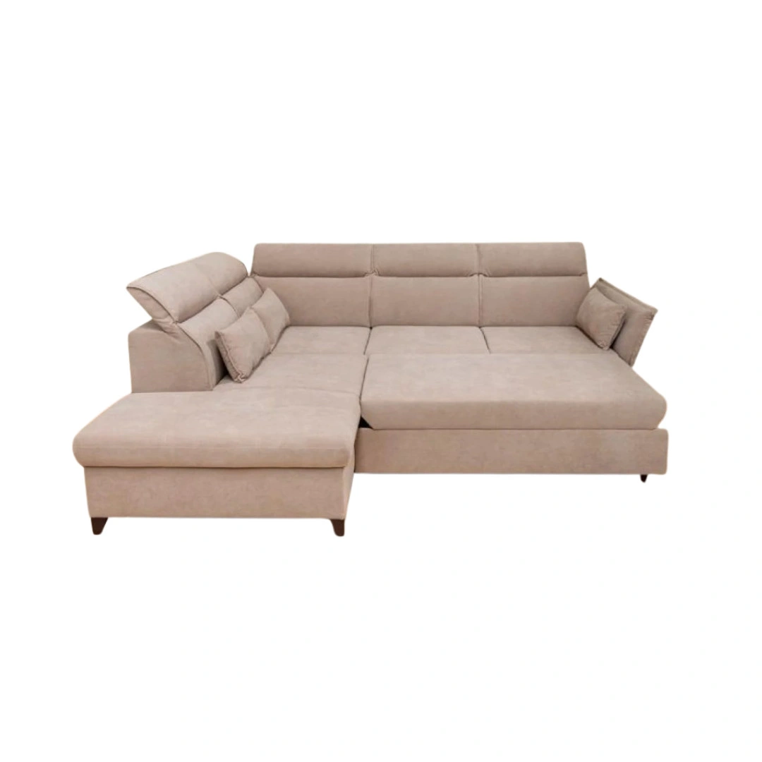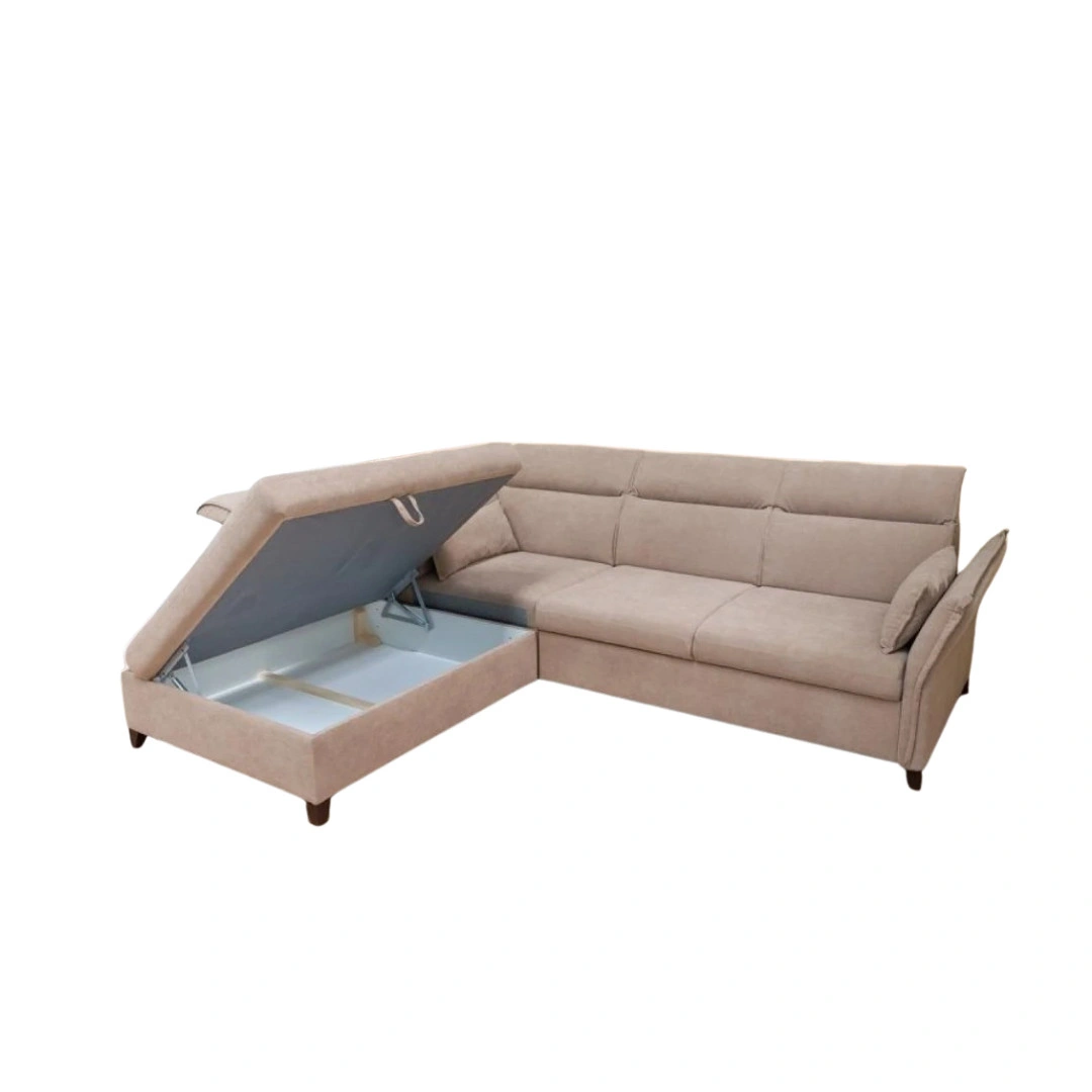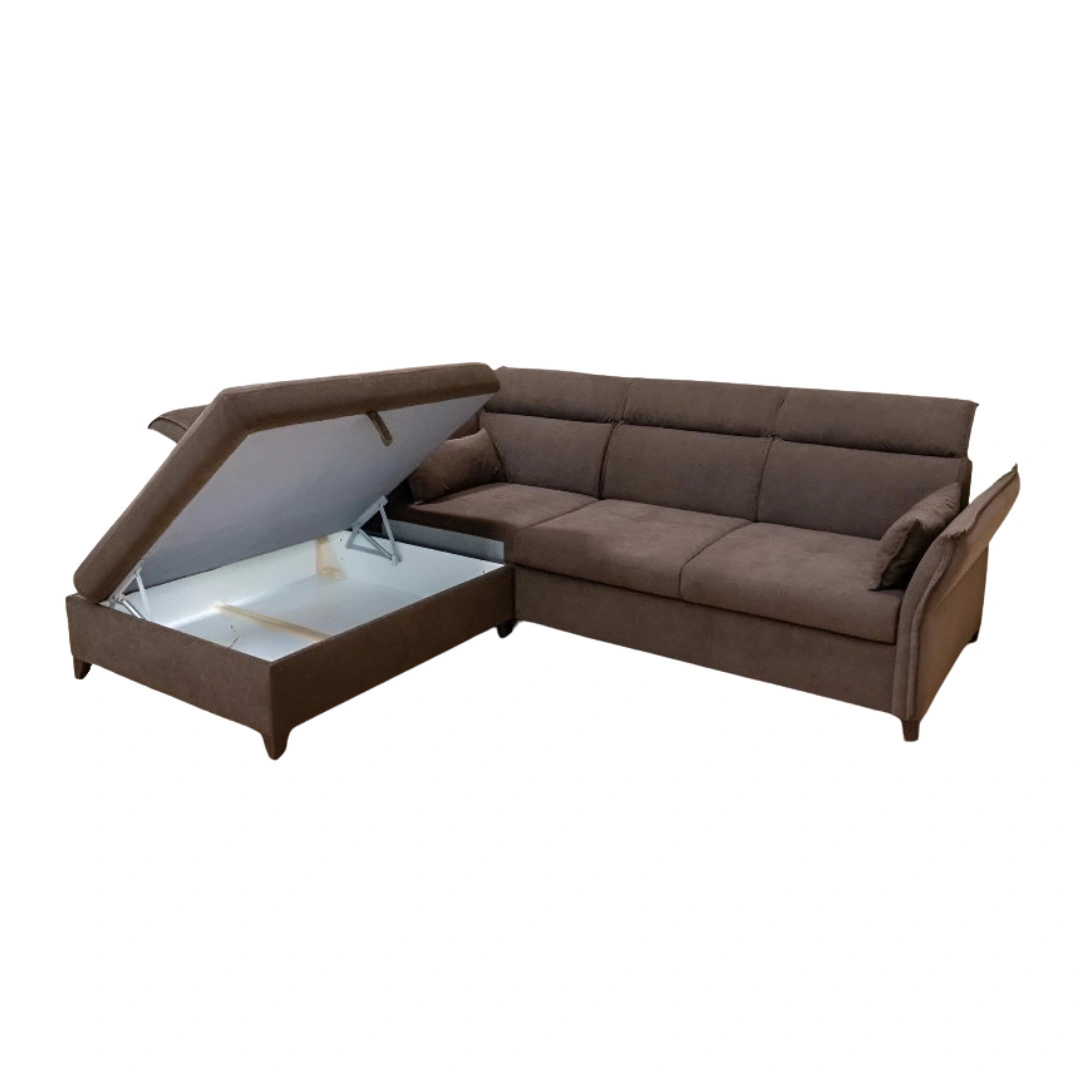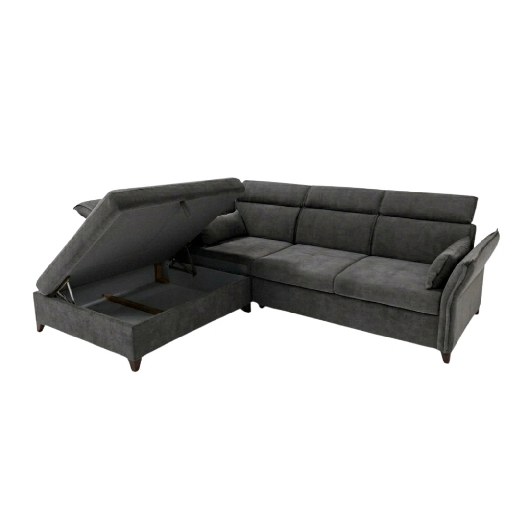 A sarokrész felnyitható, így tágas ágyneműtartót rejt. A könnyen kezelhető nyitószerkezet segítségével egyszerűen hozzáférhetsz a tárolórekeszhez, amely ideális takarók, párnák vagy szezonális textilek elhelyezésére. Ez a funkció különösen hasznos kisebb lakásokban, ahol minden tárolóhely számít.