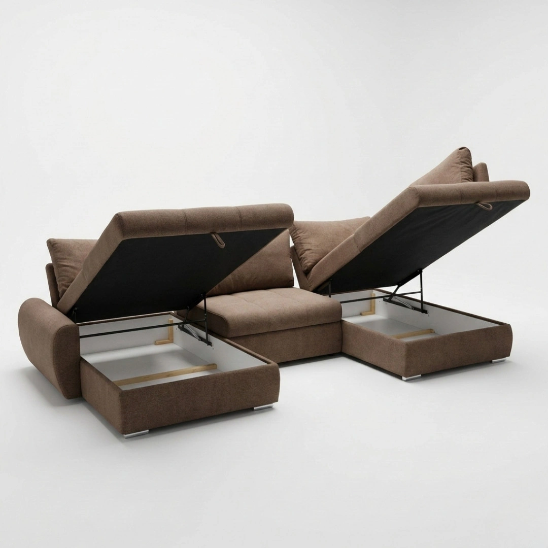 A Canyon U-alakú ágyazható sarokkanapé tökéletes választás, ha egy igazán nagy, kényelmes és funkcionális ülőgarnitúrát keresel, amely nemcsak pihenésre, hanem teljes értékű alvásra is alkalmas – mindezt elegáns, modern megjelenéssel kombinálva.
