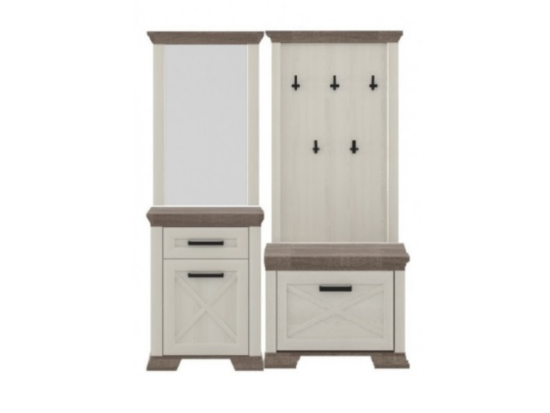 A Marsel bútorcsalád masszív kialakítás, homlokzati dekorcsíkok és sötét lapos fogantyúk jellemzik, kiemelve a formák szigorú geometriáját.
