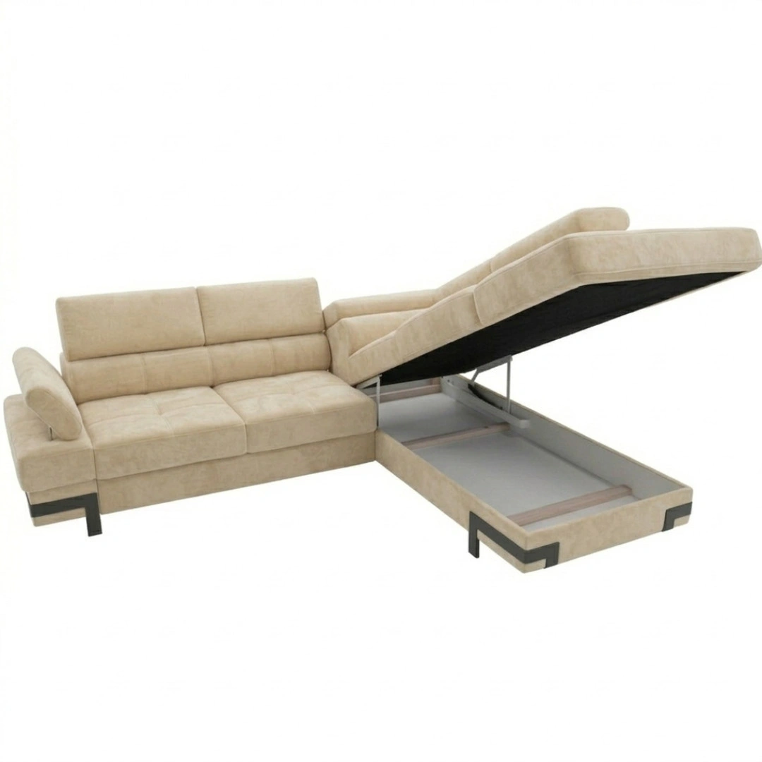 A kanapéhoz tartozó részben egy nagyméretű ágyneműtartó kapott helyet, amely tökéletes takarók, párnák vagy extra ágynemű tárolására. Így a nappali rendezett marad, miközben minden szükséges kellék kéznél van.