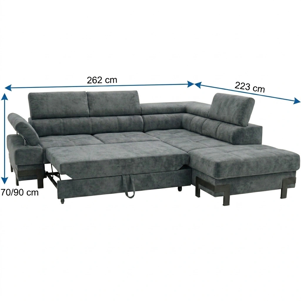 Az Emporio L sarokkanapé ideális választás, ha egy modern, ágyazható, állítható fejtámlás sarokkanapét keresel, amely nemcsak kényelmes, hanem stílusos fókuszpontja is lesz nappalidnak.