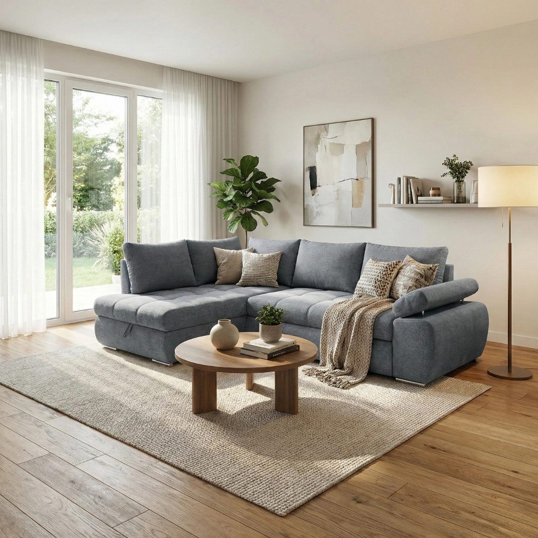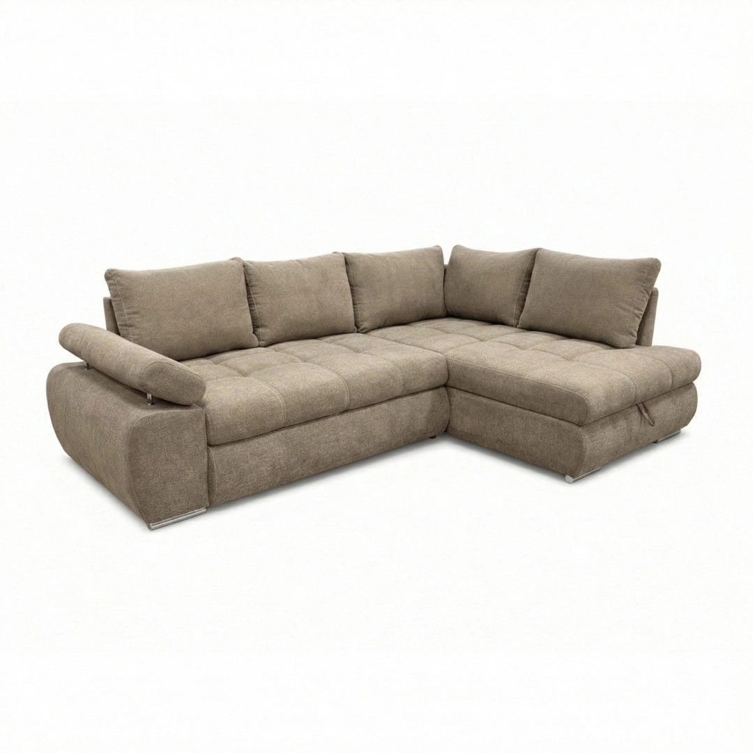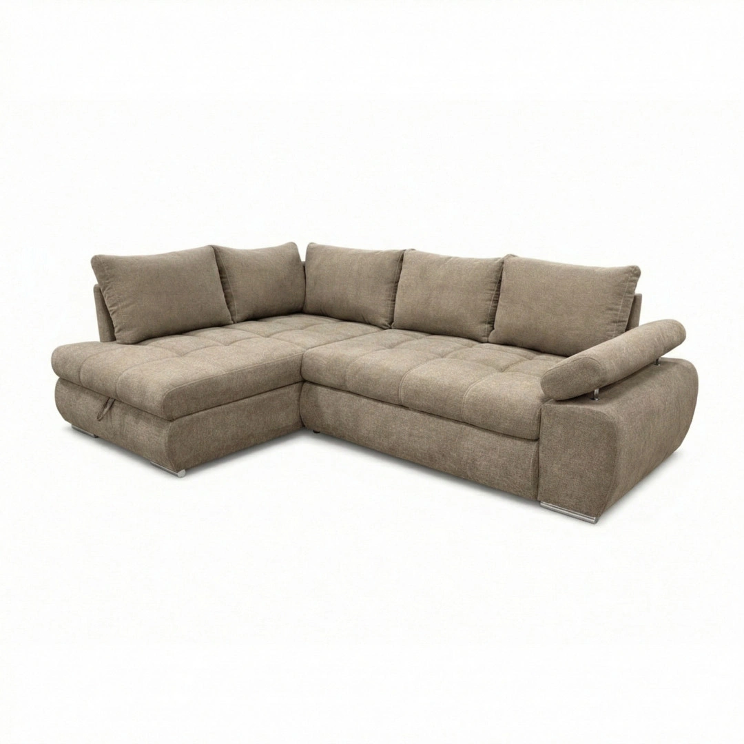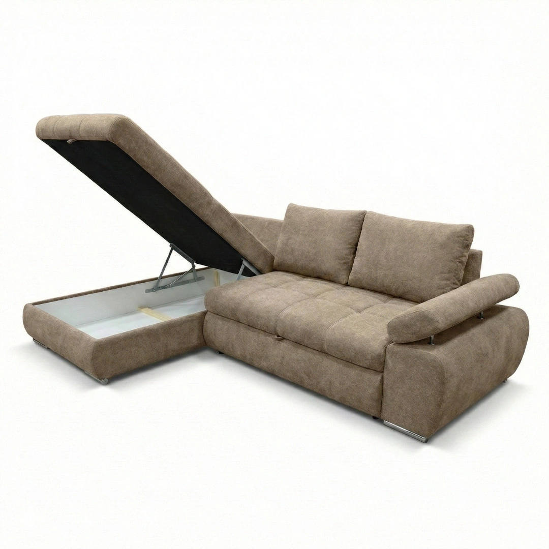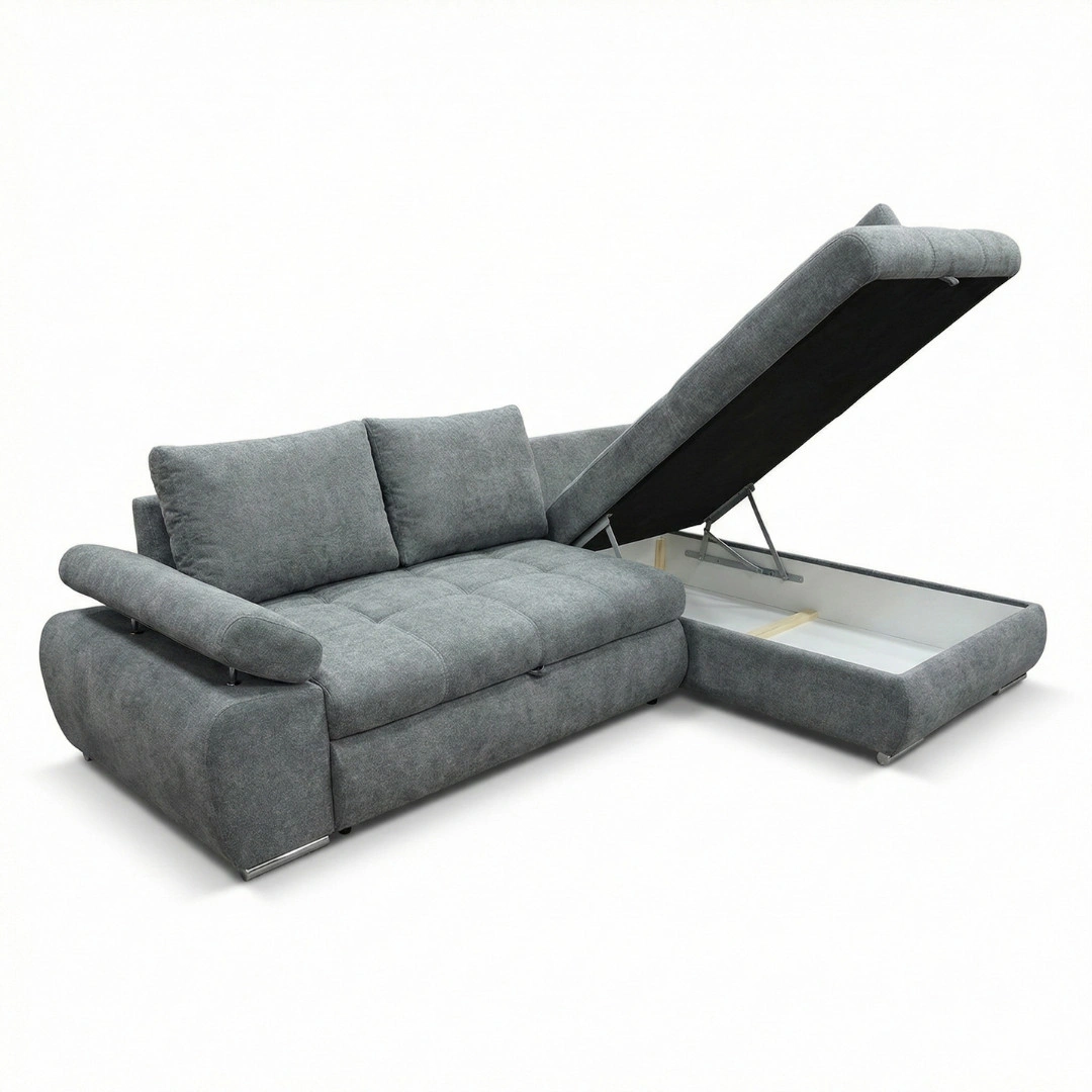 Az Enrico ágyazható sarokkanapé ideális választás, ha egy nagy méretű, kényelmes és esztétikus kanapét keresel, amely nappal ülőbútor, éjszaka pedig teljes értékű fekvőhely.