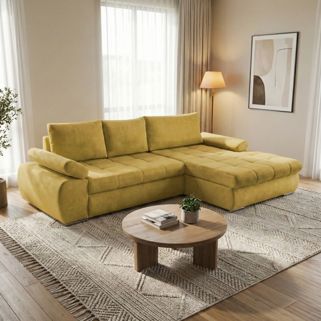 Ez a vendégágyazható sarokkanapé praktikus és stílusos megoldást kínál mindennapi használatra, miközben kényelmes alvóhelyet biztosít, ha szükség van rá.