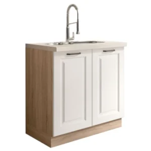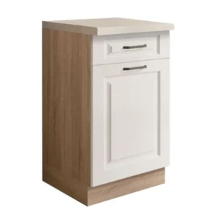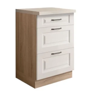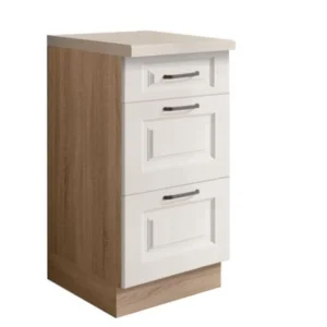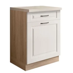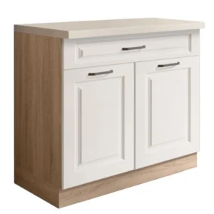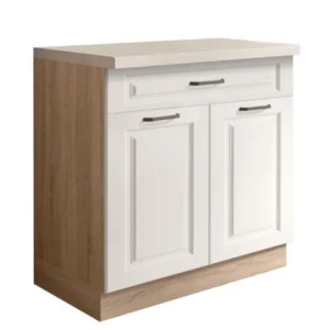 Keretes, metszett frontokkal időtálló stílust kölcsönöz konyhádnak, szürke vagy fehér színben, fekete fogantyúkkal szerelve. Ez a konyhabútor modern eleganciát és klasszikus megjelenést biztosít. Prémium minőségű anyagokból készült, hogy hosszú távon is megőrizze szépségét és funkcionalitását.