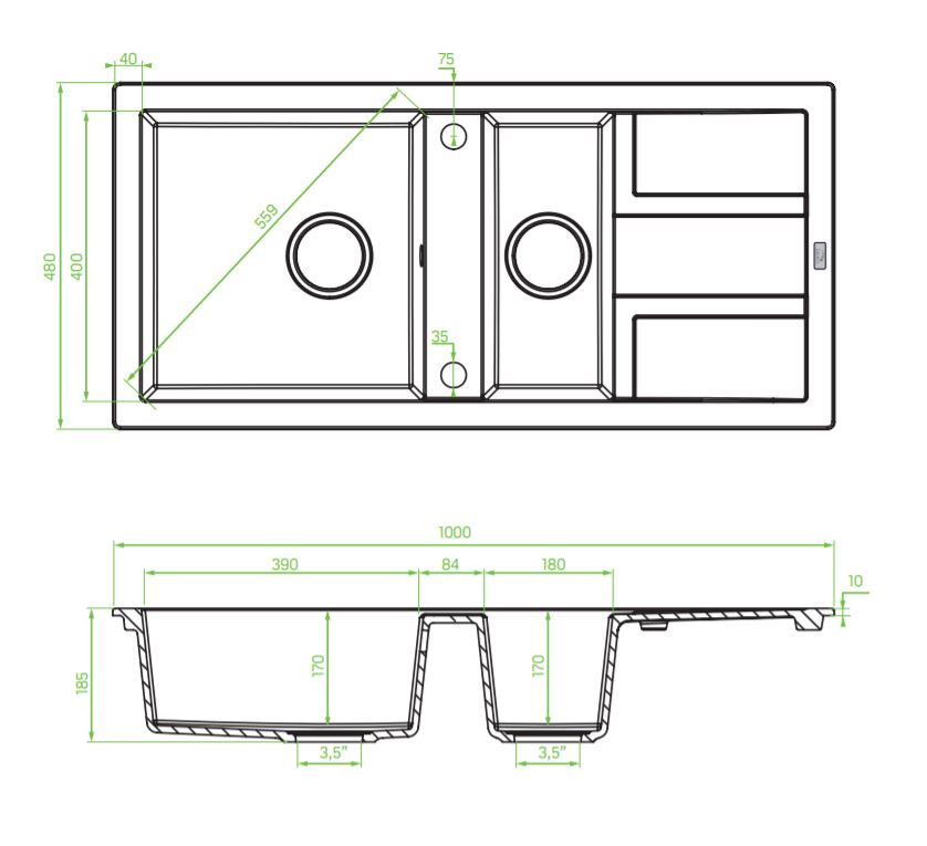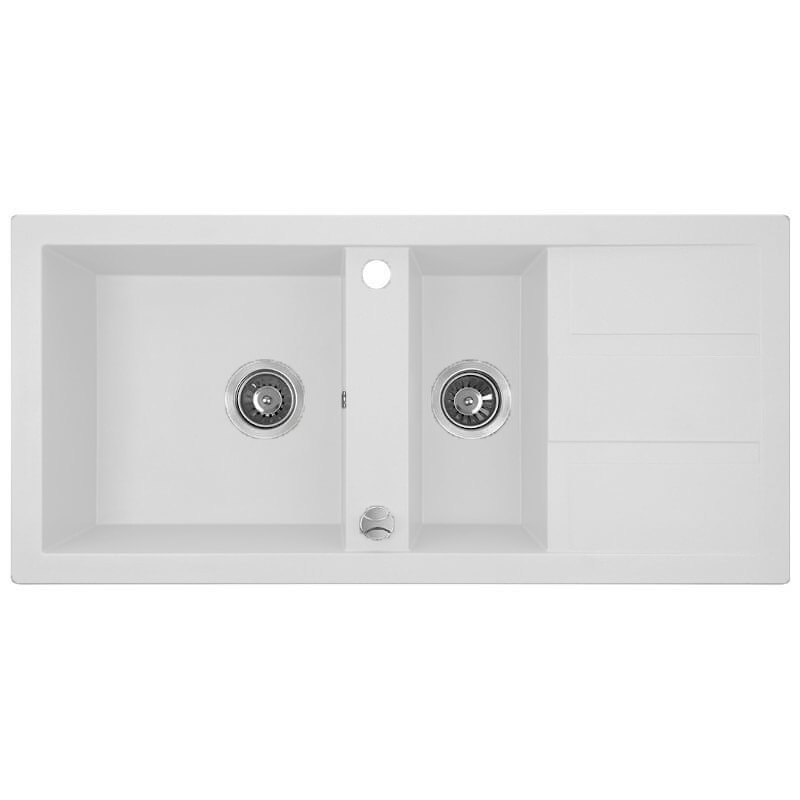 Laveo BARBADOS fehér 1,5 medencés mosogató dugókiemelős helytakarékos szifonnal