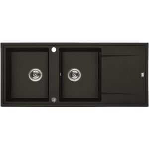 LAVEO BARBADOS jázmin kétmedencés mosogató automata dugókiemelős, helytakarékos szifonnal