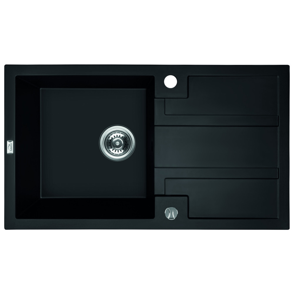 Laveo BARBADOS matt fekete csepptálcás mosogató dugókiemelős helytakarékos szifonnal