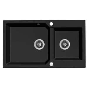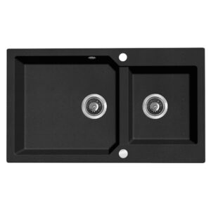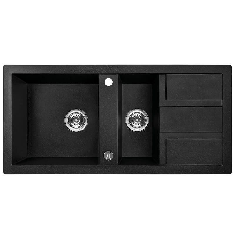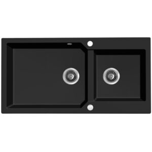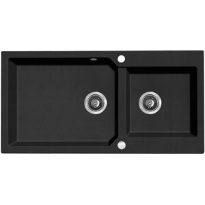 Laveo BARBADOS szemcsés fekete 1,5 medencés mosogató dugókiemelős helytakarékos szifonnal