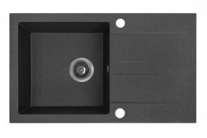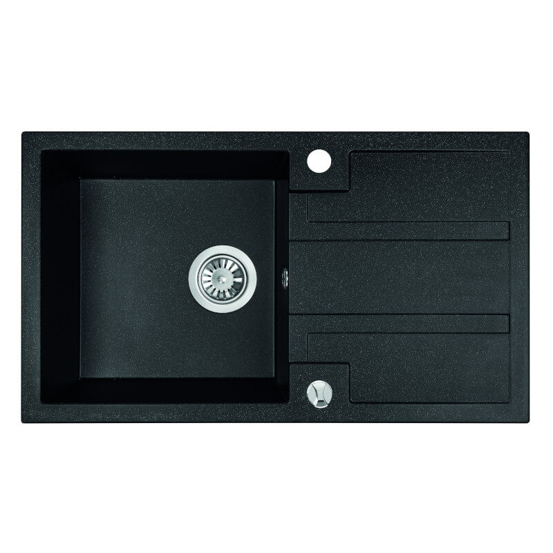 Laveo BARBADOS szemcsés fekete csepptálcás mosogató dugókiemelős helytakarékos szifonnal