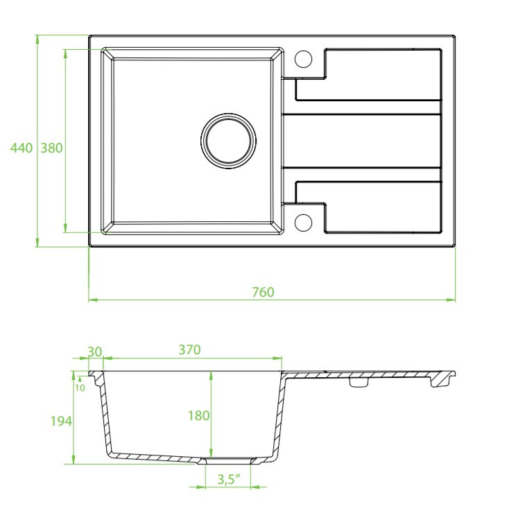 | Mosogatótálca hosszúság (mm) | 440 |