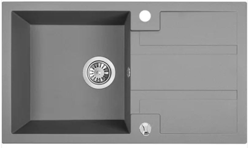 Laveo BARBADOS szürke csepptálcás mosogató dugókiemelős helytakarékos szifonnal