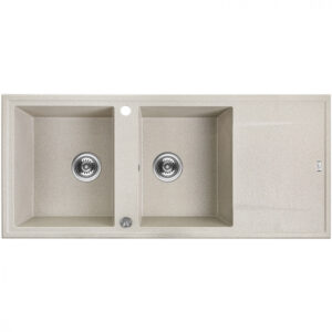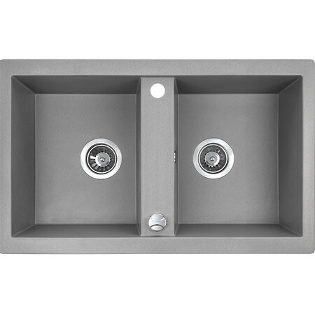 Laveo BARBADOS szürke kétmedencés mosogató dugókiemelős helytakarékos szifonnal