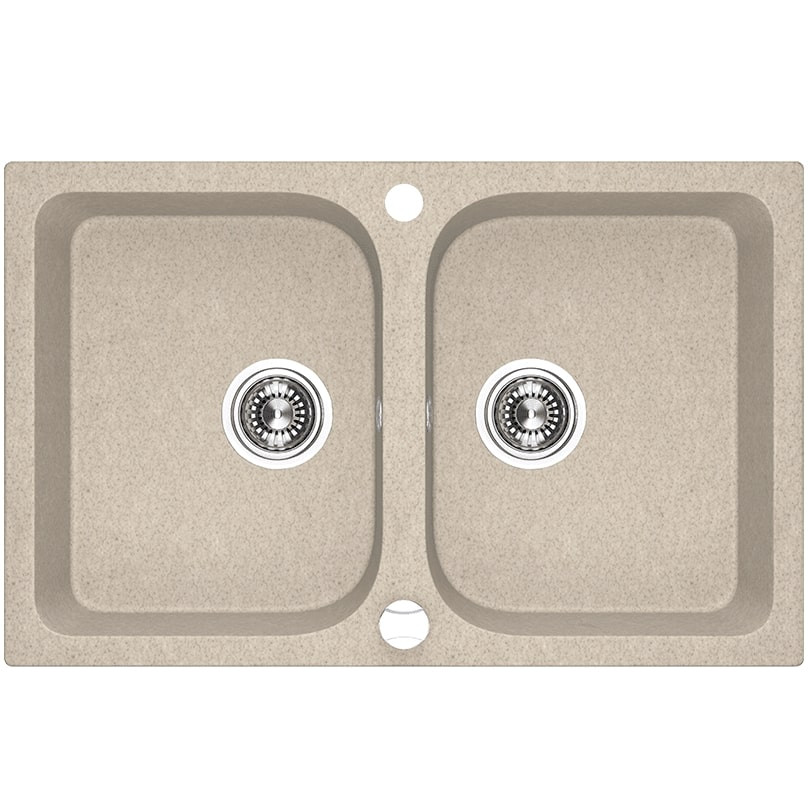 Laveo CELIA bézs kétmedencés mosogató dugókiemelős helytakarékos szifonnal