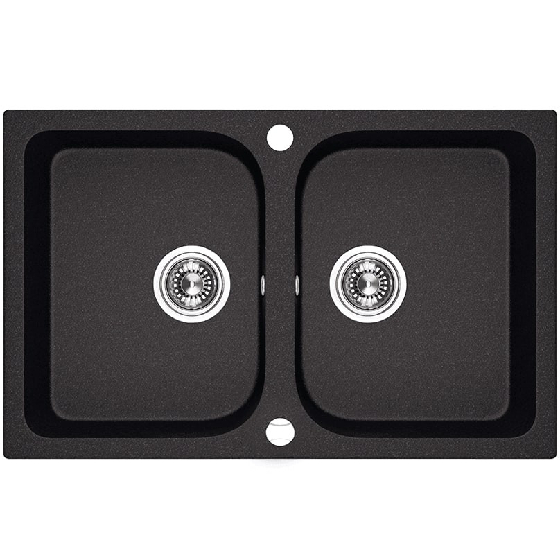 Laveo CELIA matt fekete kétmedencés mosogató dugókiemelős helytakarékos szifonnal