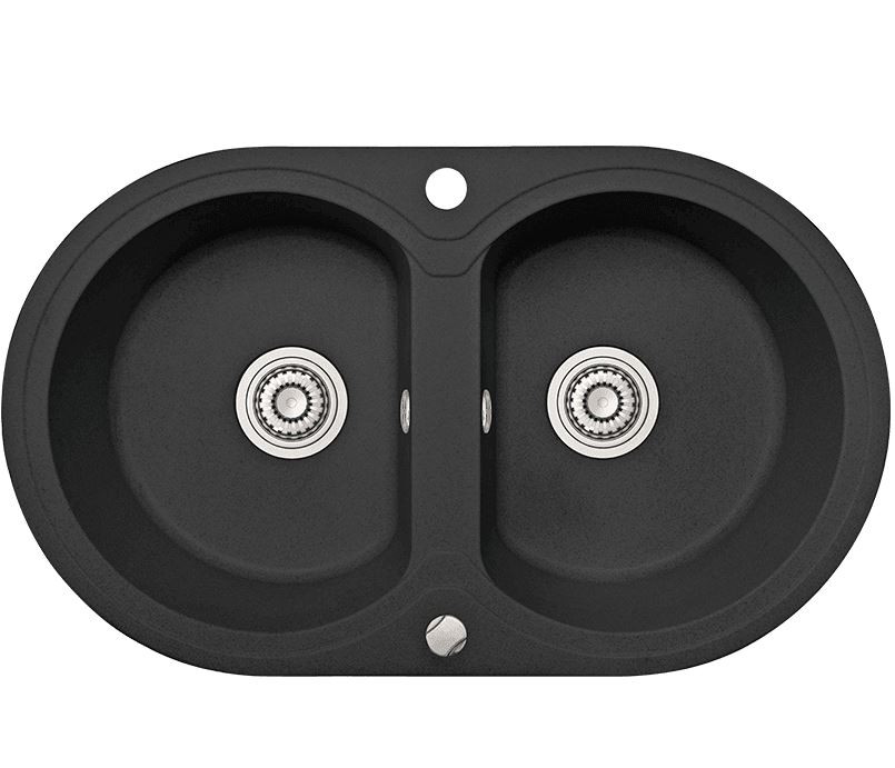 Laveo DAFNE kétkör szemcsés fekete mosogató dugókiemelős helytakarékos szifonnal