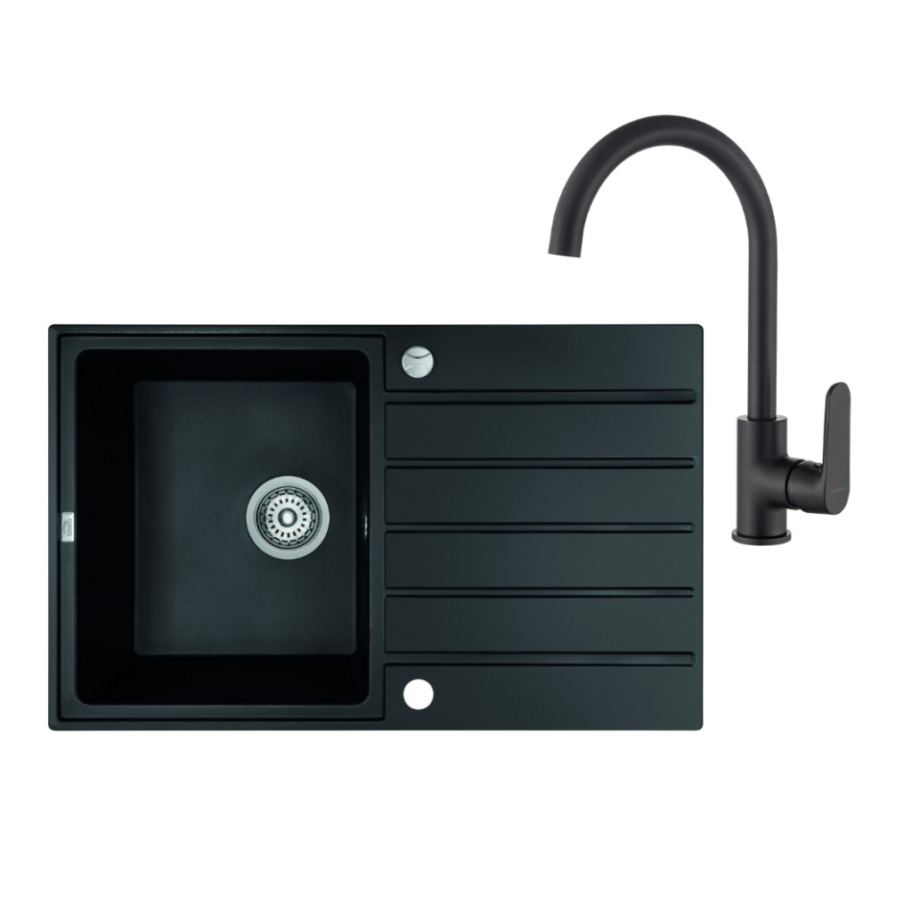 Laveo MARGARITA matt fekete szett álló csappal, dugókiemelős szifonnal