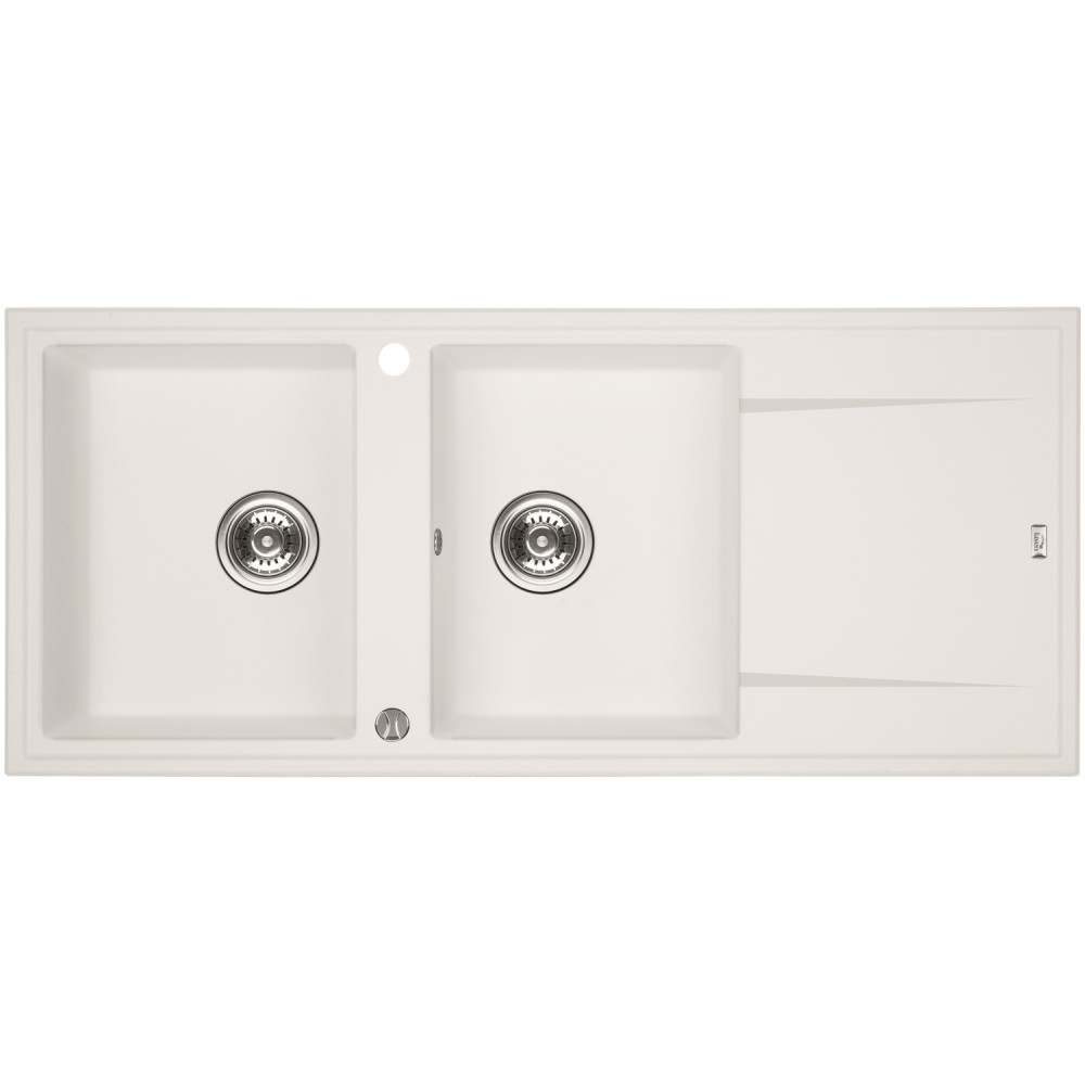 Laveo MEGALO kétmedence csepptálcás fehér mosogató dugókiemelős helytakarékos szifonnal