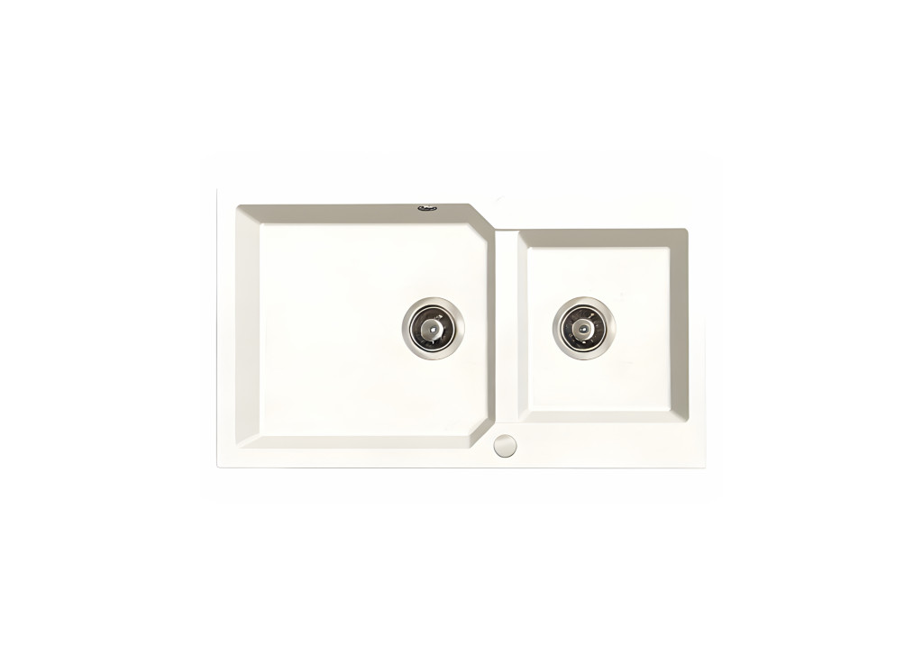 Laveo MILOS 2M 100 kétmedencés jázmin gránit mosogató helytakarékos dugókiemelős szifonnal