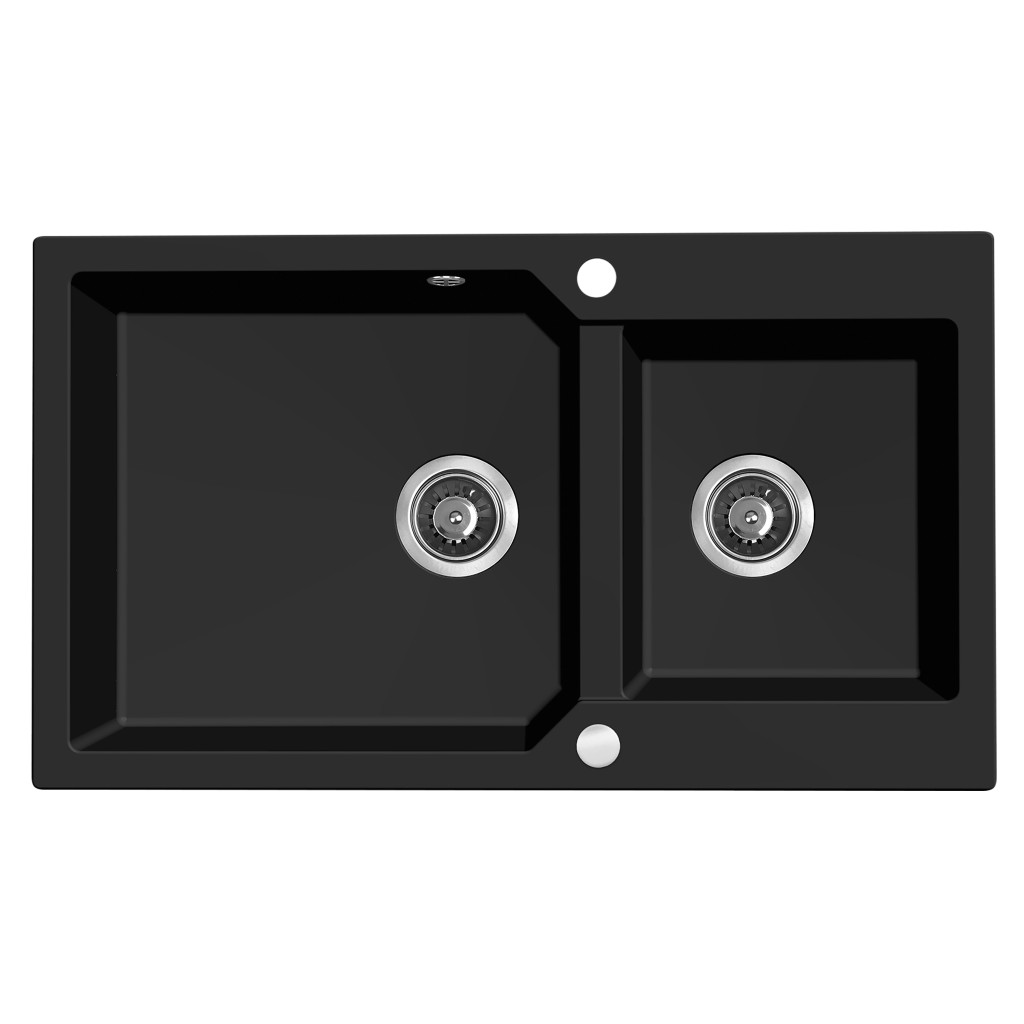 Laveo MILOS 2M 90 kétmedencés matt fekete gránit mosogató helytakarékos dugókiemelős szifonnal