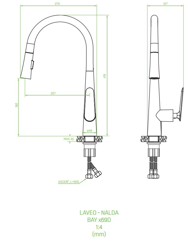 Laveo NALDA Kihúzható zuhanyváltós csaptelep, matt fekete