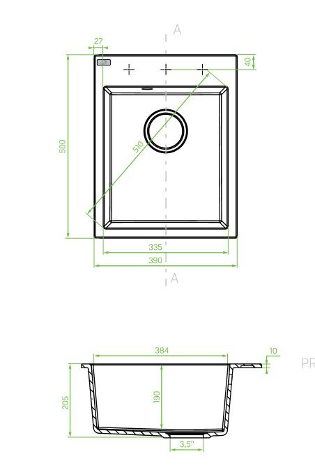 Laveo PICO egymedencés szemcsés fekete mosogató helytakarékos szifonnal
