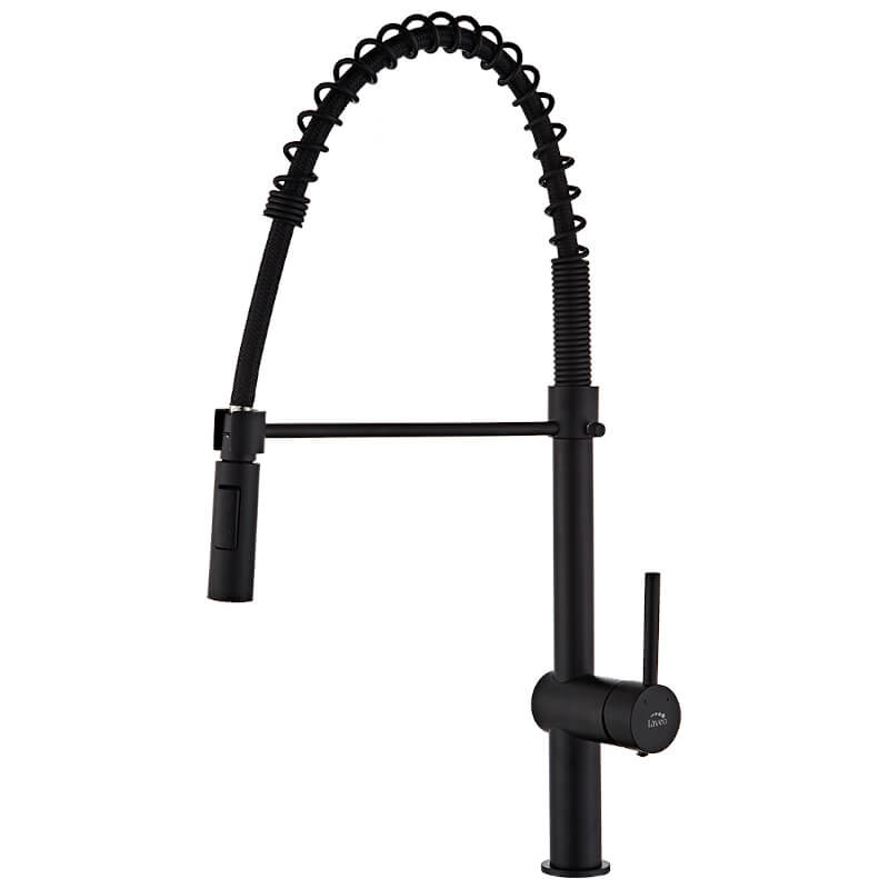 Laveo RHEA zuhanyváltós csaptelep rugós kiömlővel, matt fekete termékleírása